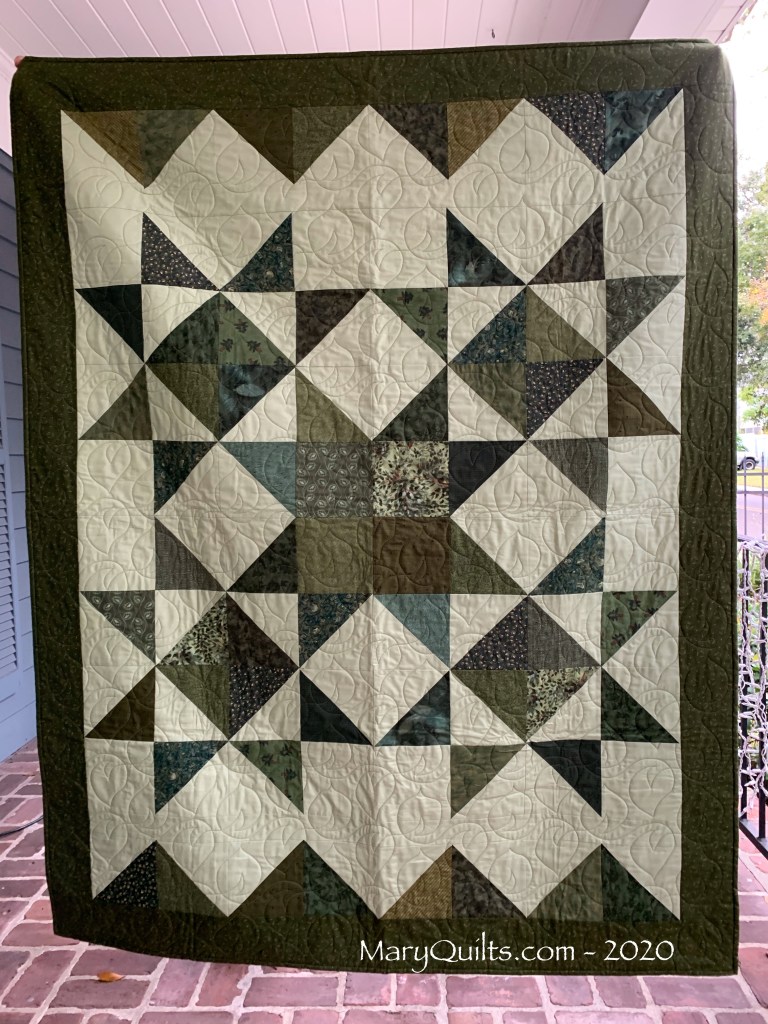 My finished quilt in greens is below.