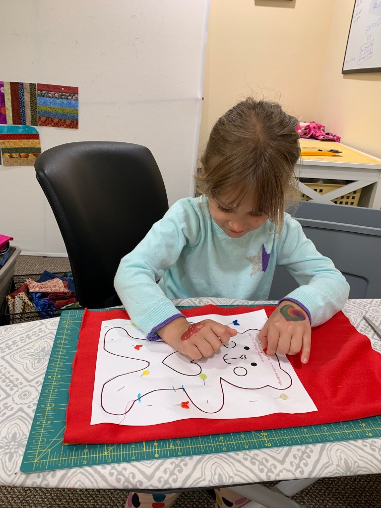 I then unpin, do the faces and heart and pin them back together and sew them on the machine leaving the opening to stuff. I also trim the seam allowance narrower after sewing with pinking shears, leaving about 1/4 inch seam. I’d seen that in my search for information about sewing these small stuffed animals.