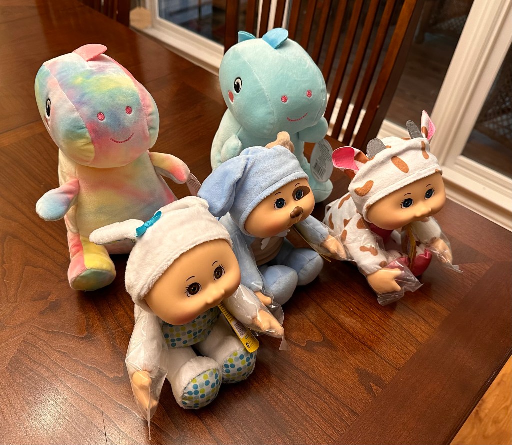 I’ve also found some Cabbage Patch dolls and some plush Dino’s at the local Dollar General store. They’re a bit more expensive but I’m willing to buy a few of these too to mix in with the Dollar Tree bears and the home made bears! Those dolls were $10 and the Dino’s were $5.