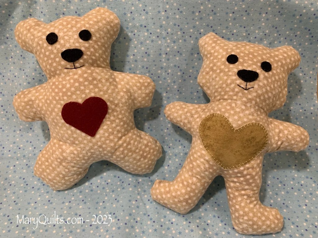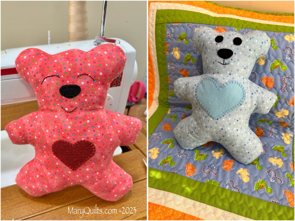 And here are a couple more made today to close out 2023 — I will continue to make bears and the doll quilts and donate them because I’m told that the children receiving them are loving them.