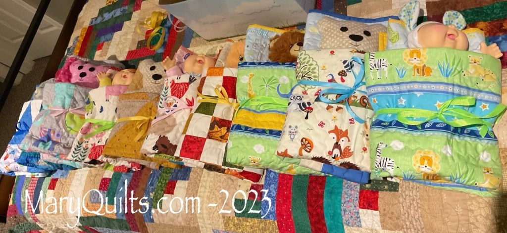 This was the last batch all wrapped up in their quilts and ready for donation.