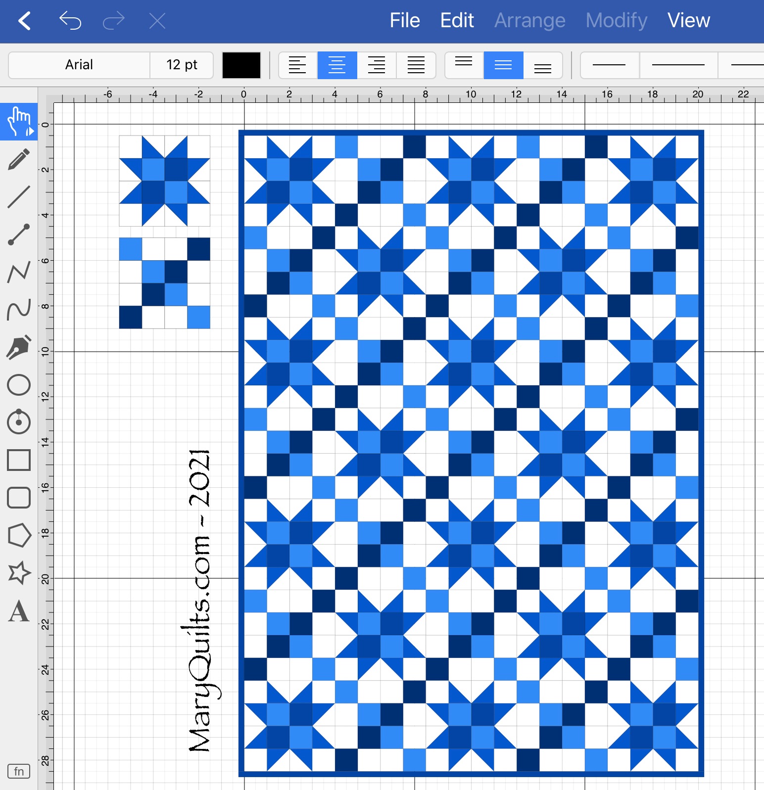 - Finished size as shown below without borders would be 60 x 84 with a 12 inch finished block.