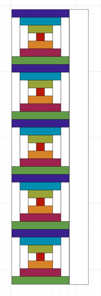 To make extra space for the hearts, I’m going to add a strip that is cut 3.5 inches (it will finish at 3 inches and be the same width as two of the logs. I will sew 5 blocks in a vertical row and then add the strip on the right side of the row. I will do this with the first 3 rows, the final row of blocks will not have a strip sewn to it.