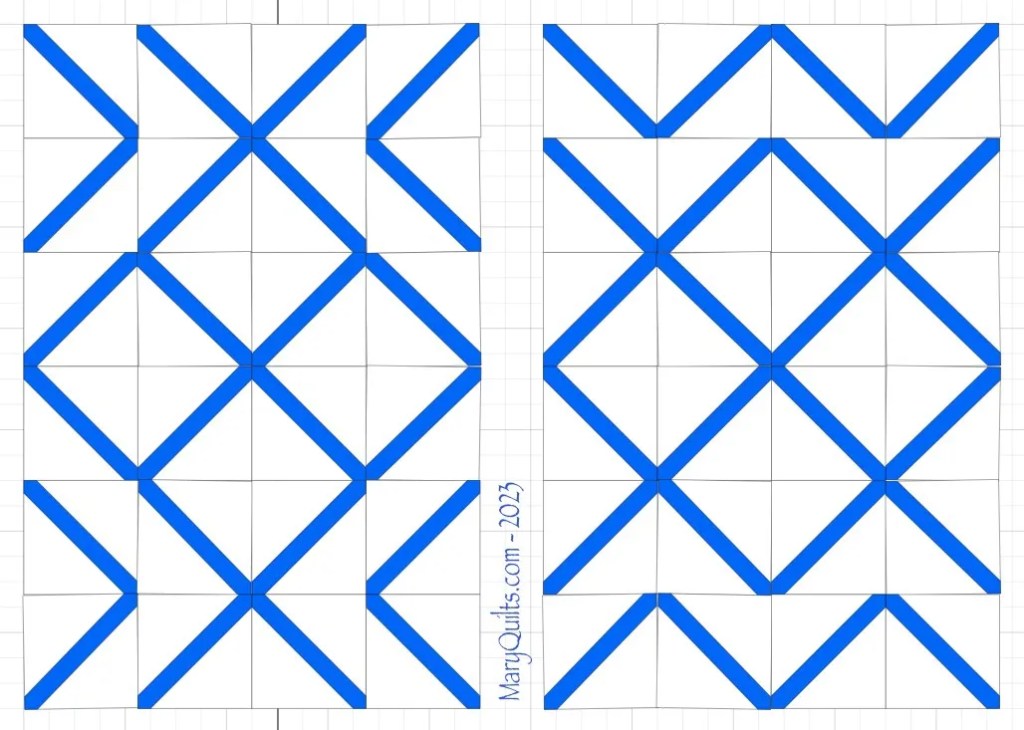 So why spend time playing with layouts? I’ve got lots of leftover strips and strings and I’ve liked working on this batch of group quilts. I don’t often make 24 block HeartStrings myself, usually making the 48 block ones but I kind of want to pull out my bright strips and strings, find some fun borders, and make some of these myself and play with different SYMMETRIC layouts!