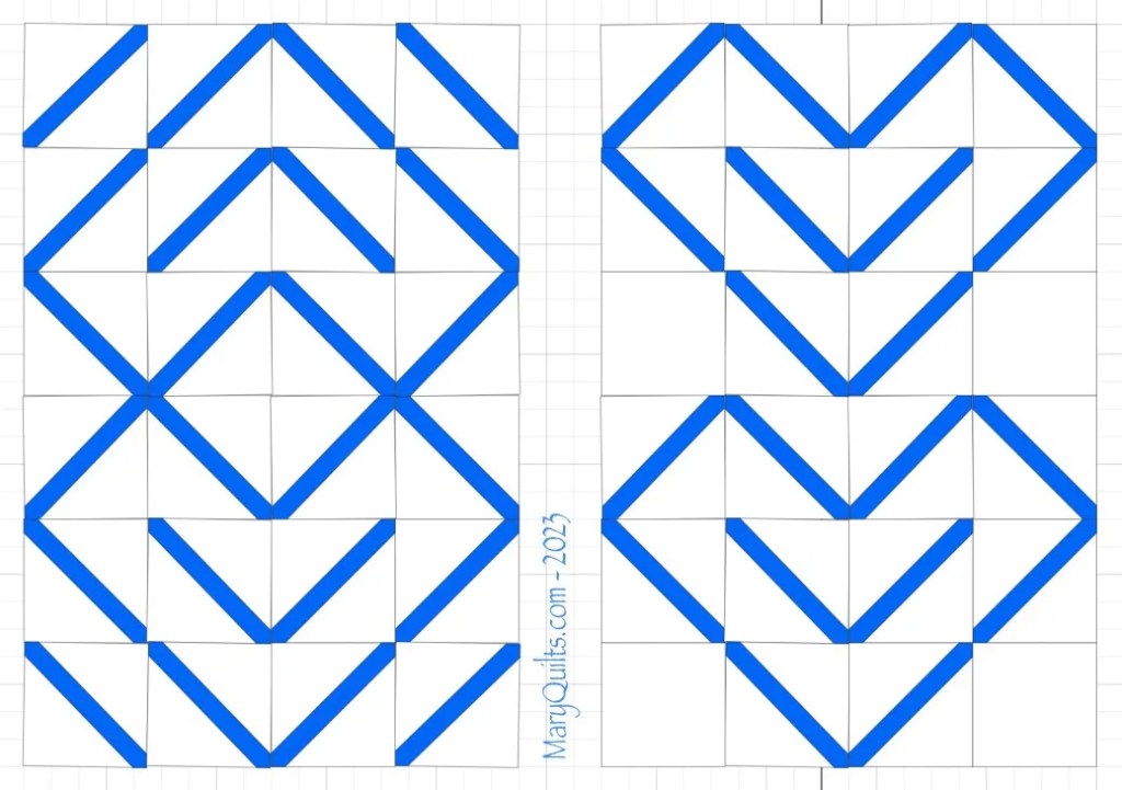 Another two… on the right layout – I’d make 4 blocks without a center string in order to get the dual heart image.