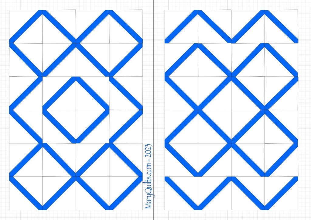 I pulled out the iPad and opened my TouchDraw app and started making symmetric layouts. There are 2 different 24 block layouts to each image