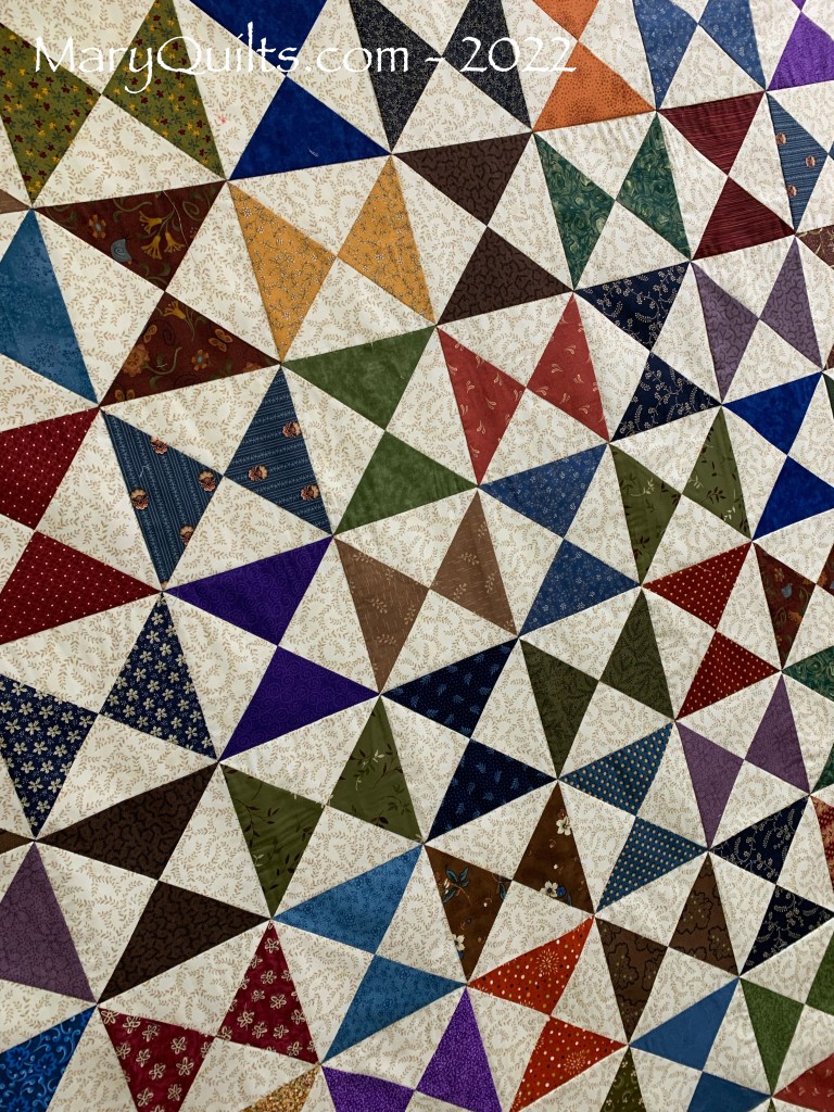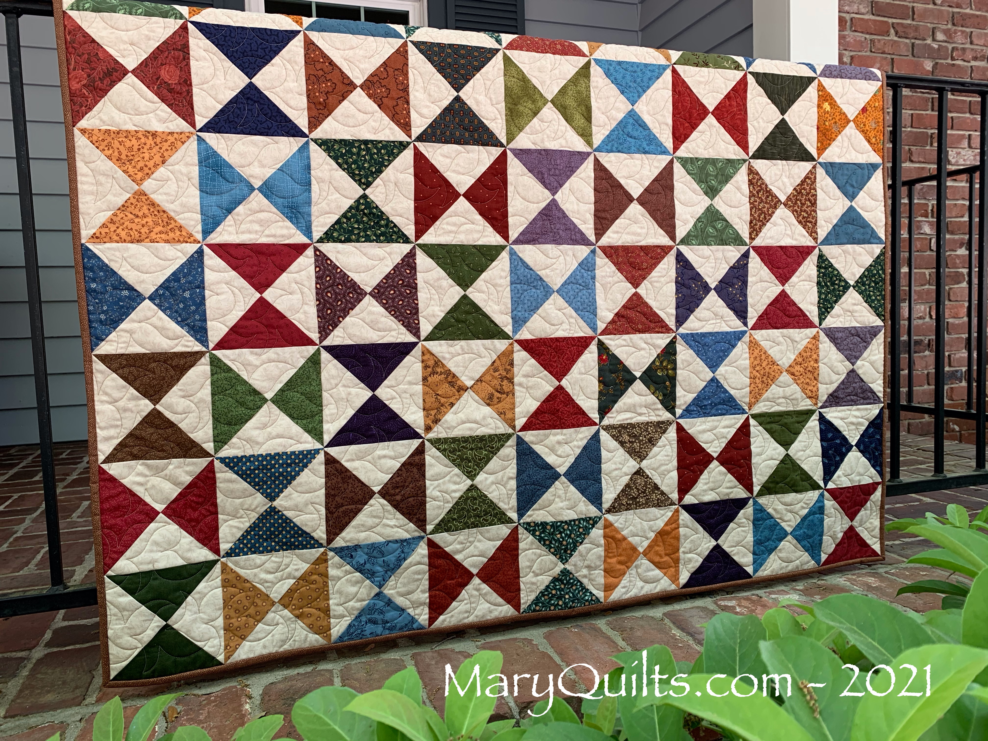 Here’s an easy quilt to piece using Quarter Square Triangles. I used my Accuquilt Go to make my blocks but you can make them from squares too.