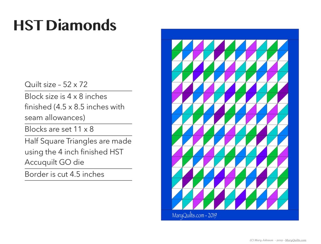 Earlier this year I made this small quilt from a set of charm squares. Nothing fancy, just rotating half square triangles to create diamonds.