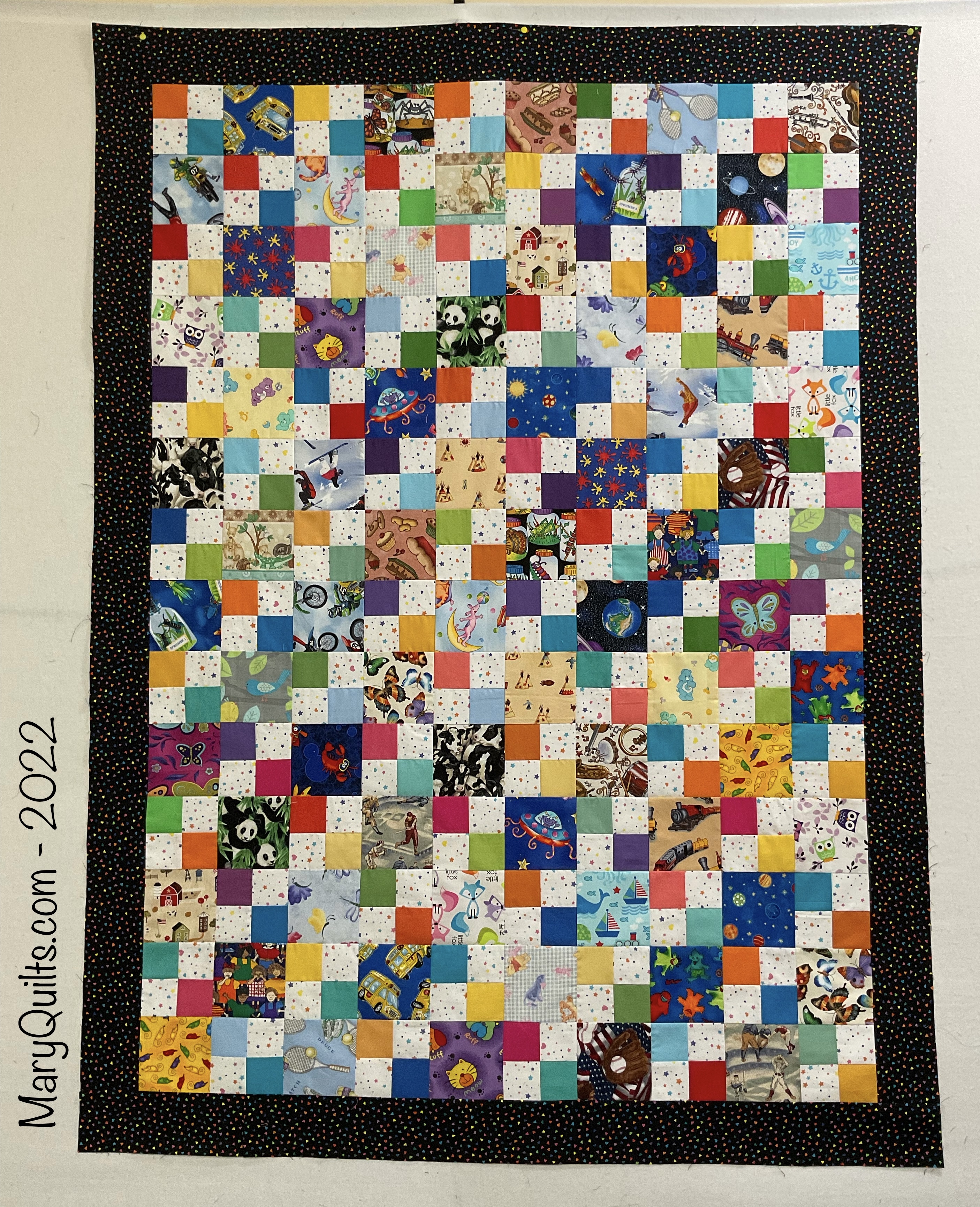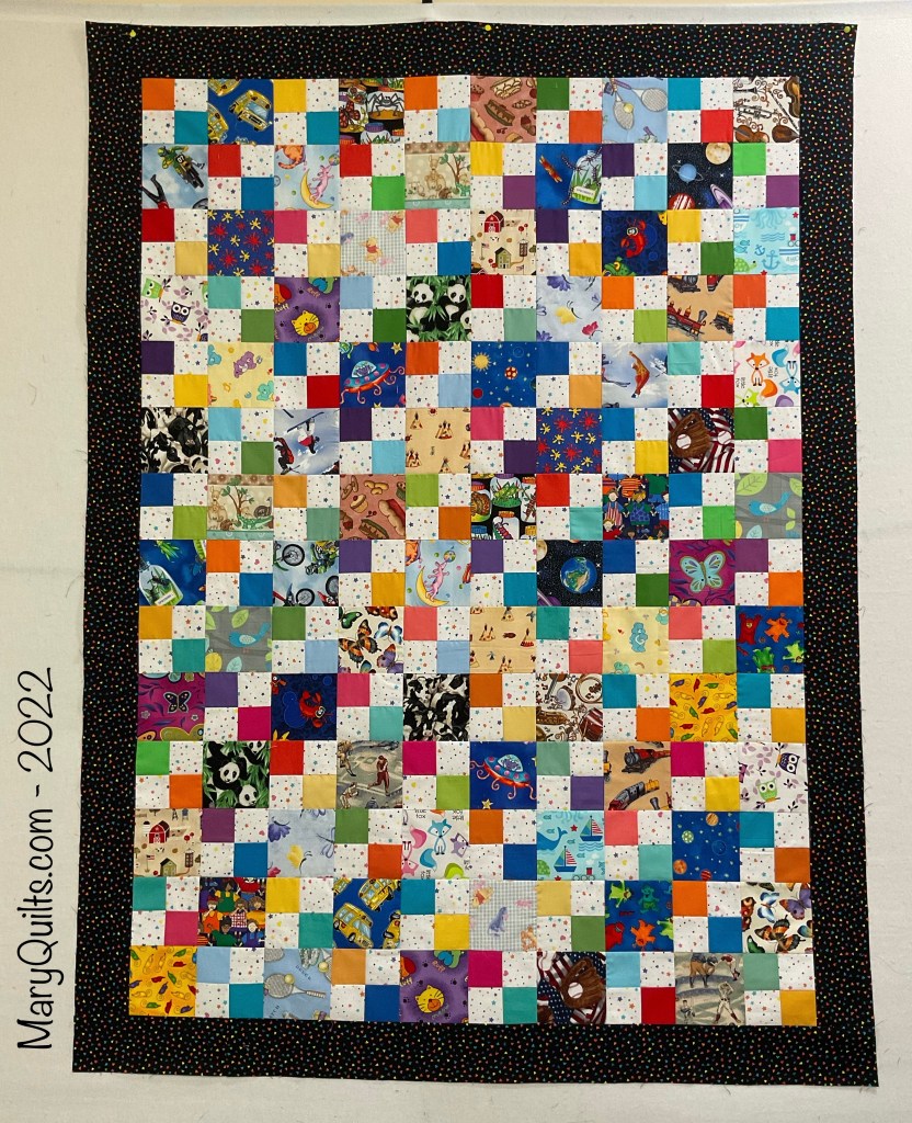 This one is insanely busy but also very fun! If I made it again, I think I would use a black tone on tone print in the 4 patch block to make it a little less busy.