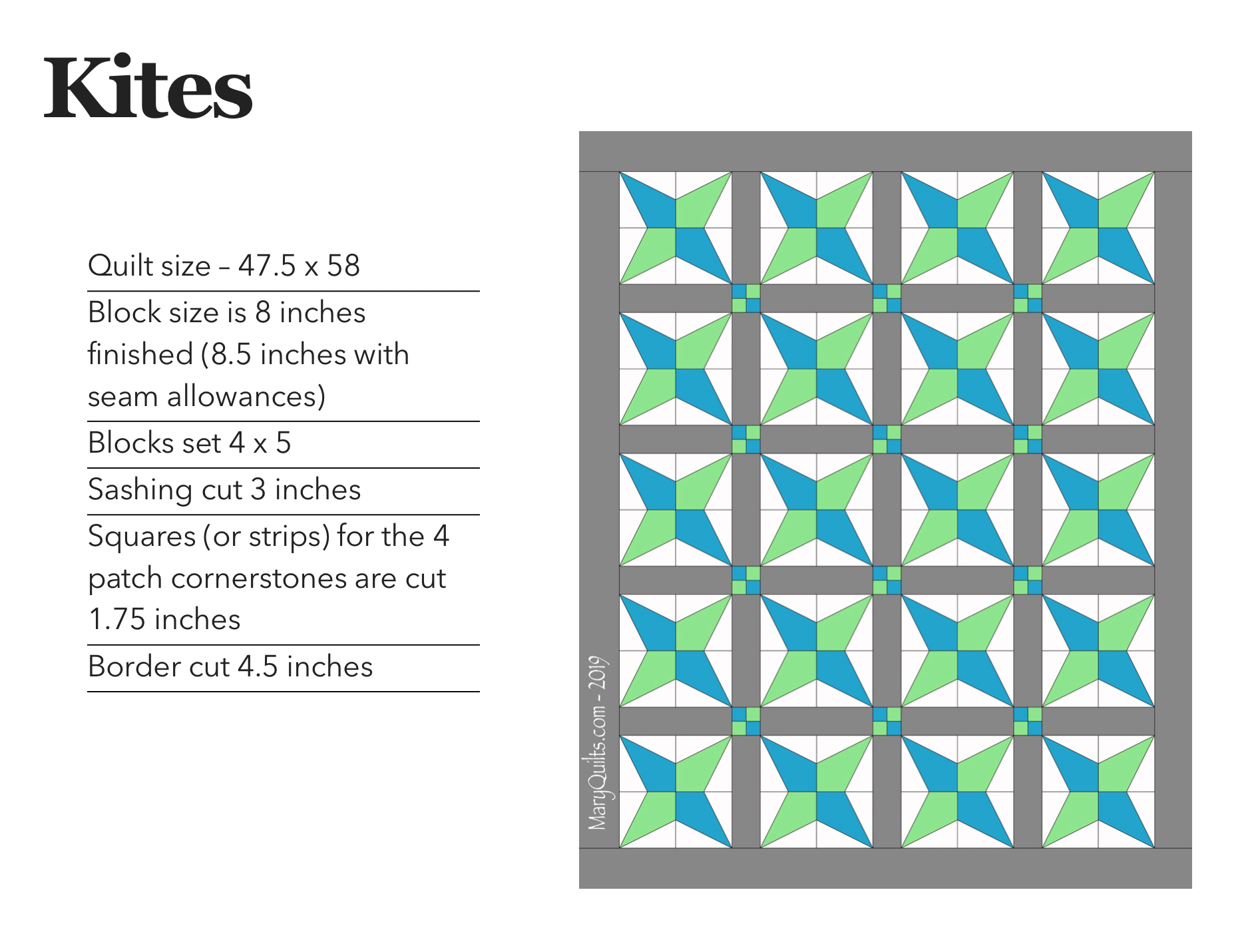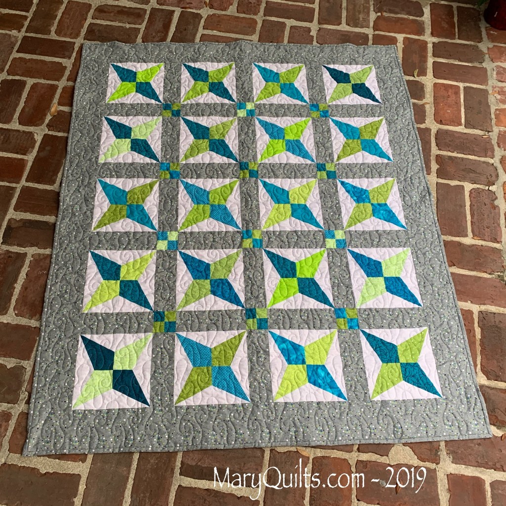 Kite Quilt Blocks are cut using the Accuquilt GO Kite die. Brief notes for my quilt are below. Click on photo below to enlarge. Like Loading...