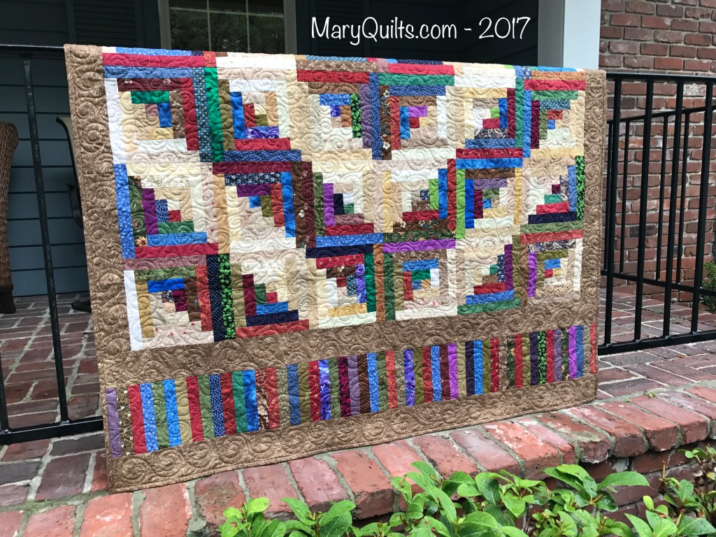 Log Cabin quilts are one of my most favorite quilt of all. I love the colors you chose. I’ve just added rows to mine to make the the size I’ve wanted … I’ve never thought about adding borders. If you only used your Accuquilt cutter for strips 1-8, I assume that you cut strips 9-15 manually?