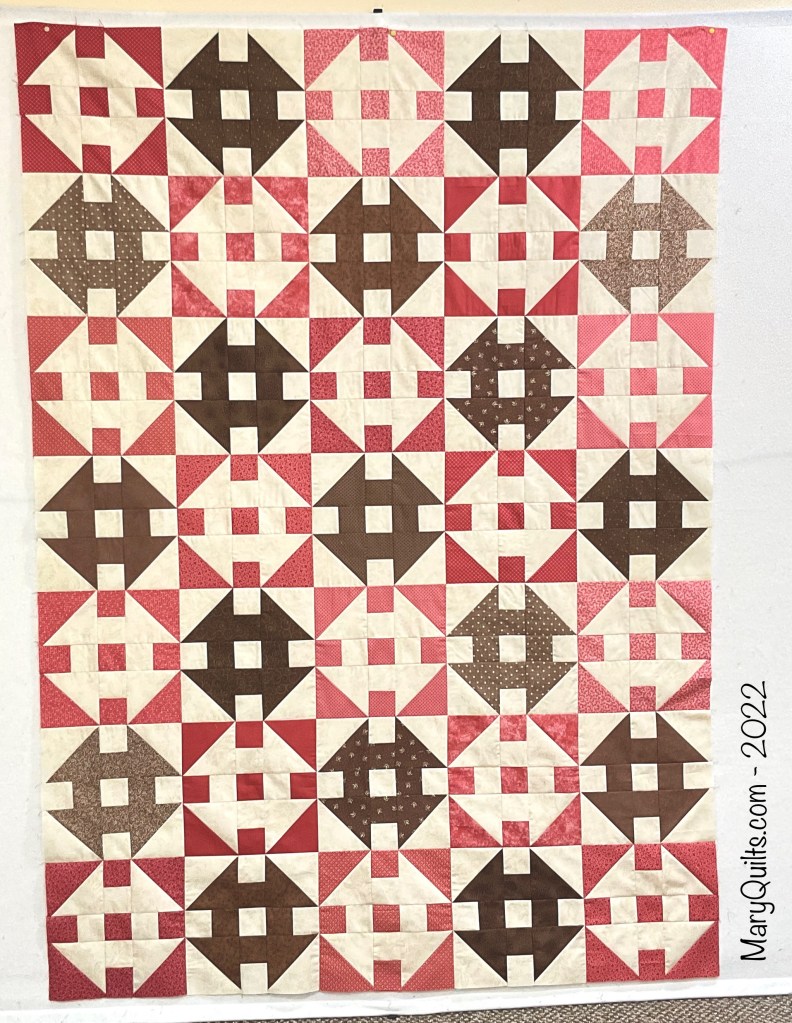 Inspired by a vintage quilt found on eBay, I dug into my brown and pink fat quarters.
