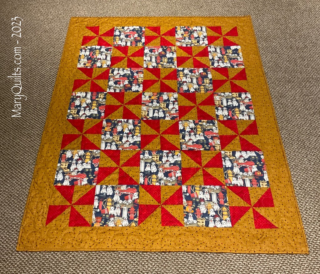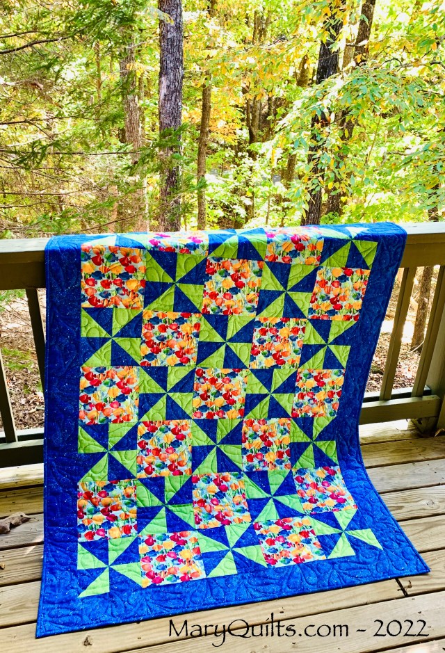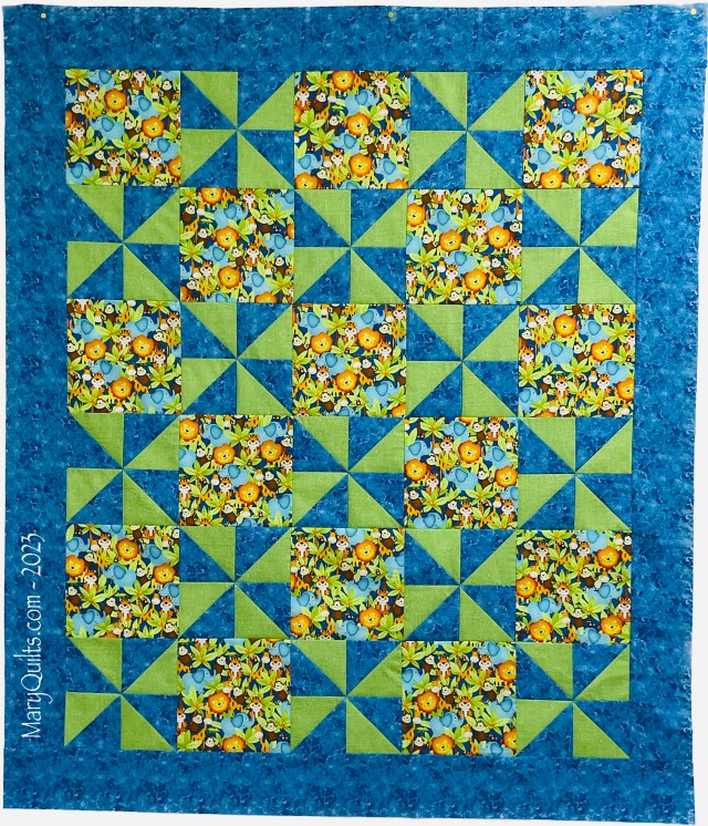 Here’s a simple 3 fabric quilt based on one that I used to make for donation when we were living in Marietta between 2002 and 2006. I recently came across this old photo and decided to remake it.