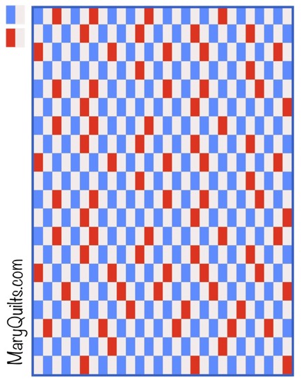 For odd rows, you’ll orient your block as shown above with a blue or red in the top left, for even rows, you’ll just flip that block around so the neutral fabric is in the top left position.