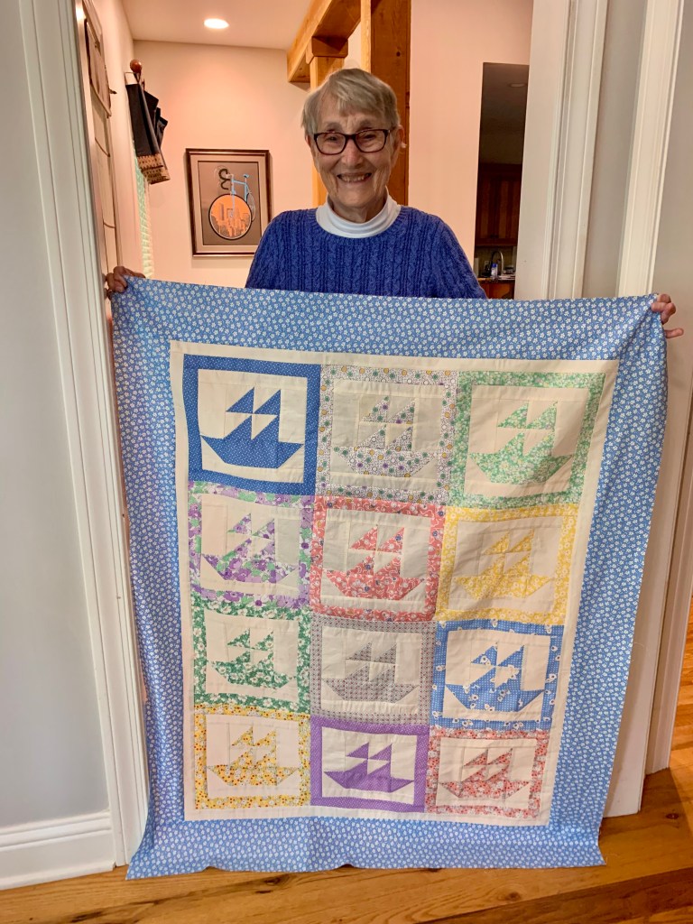 Sailboats This is a little quilt I drafted for Mom. I might make it to donate one day! Click here for brief instructions for the Sailboat quilt Like Loading...