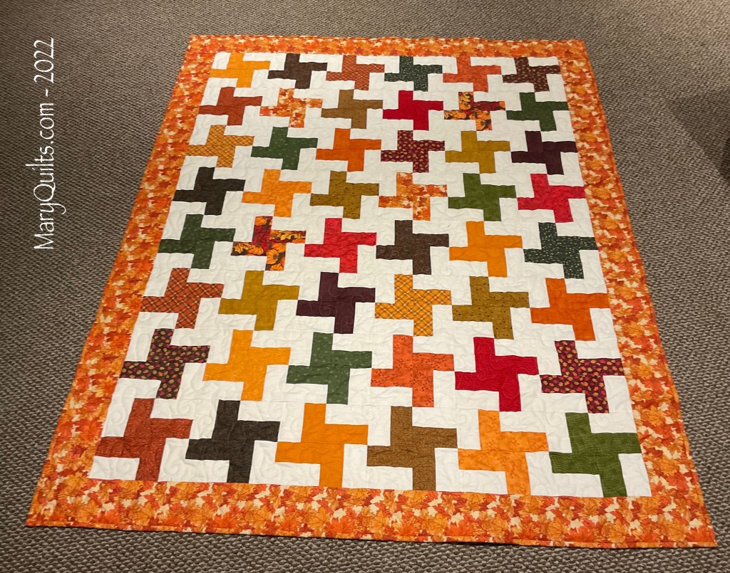 How about an Autumn inspired version? In this one blocks are set 6 x 8 and a border (cut 4.5 inches) is added.